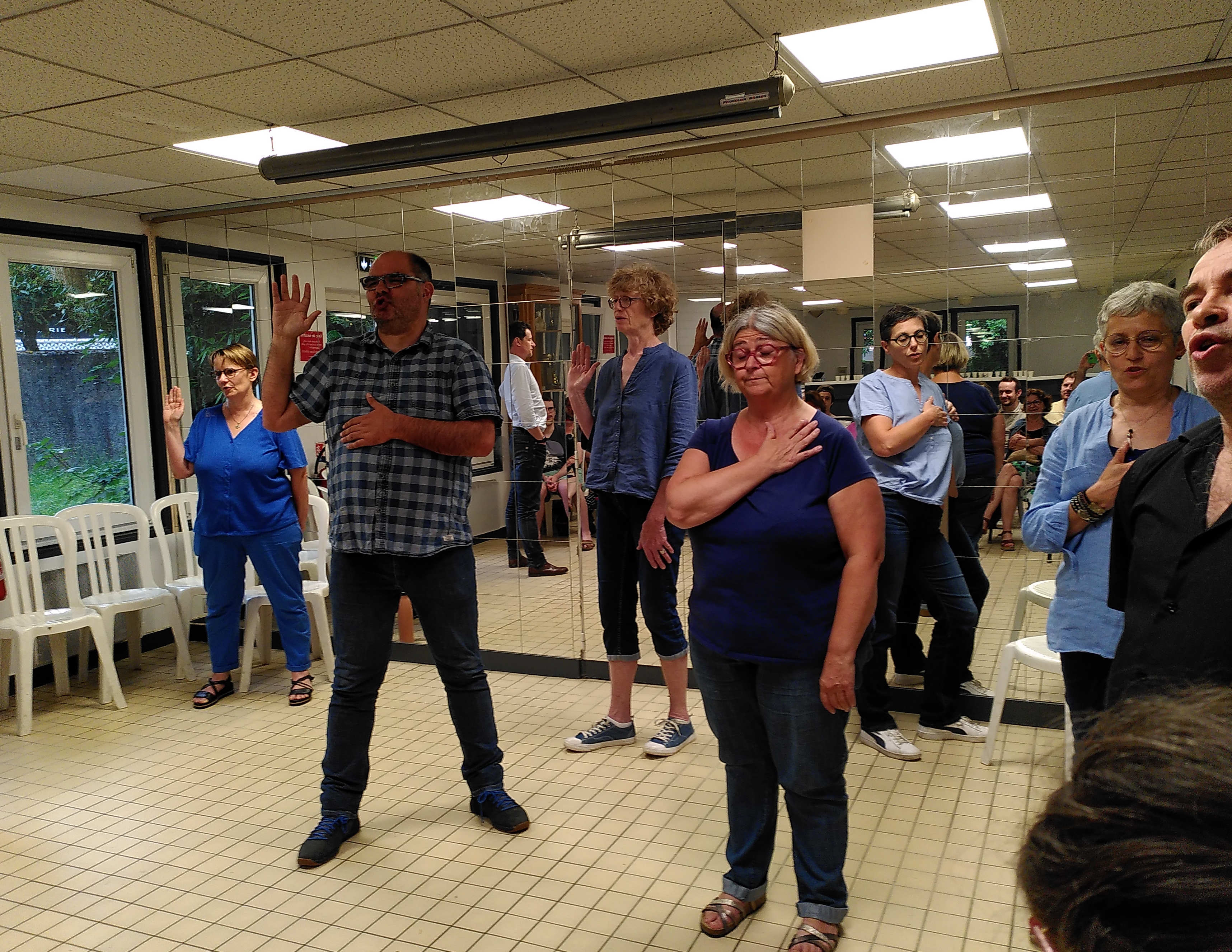 Jean AUDOUIN, membre des compagnies "Les Lutins Givrés" et "Sentimensonges" adapte ses ateliers en fonction du niveau et de la participation de chacun.