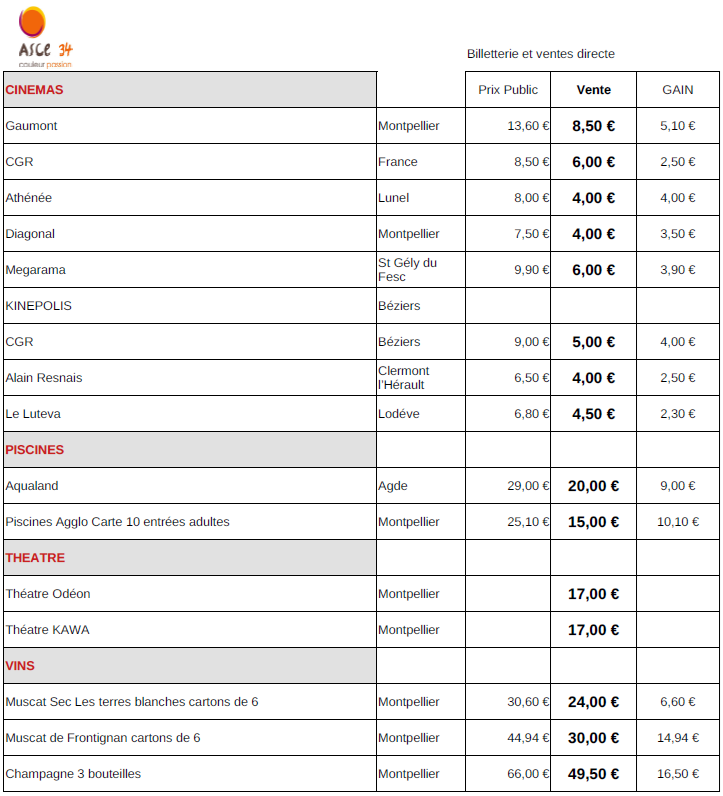 Ci-dessous la billetterie proposée par l’ASCE 34 à tarif réduit !