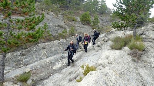 Le départ de la Croix-sur-Roudoule, sur le GR 510, monte dans la forêt reboisée de pins noirs d’Autriche. Les couleurs de l’automne sont un ravissement tout au long de la journée et quelques champignons sont ramassés. Le circuit autour du Mont Auvare nous permet d’admirer au loin les sommets du St Honorat légèrement poudré de neige, le Mounier beaucoup plus loin bien recouvert, et aussi en repassant vers le village d’Auvare, le Cheiron versant nord qui a également bien profité de l’épisode neigeux.