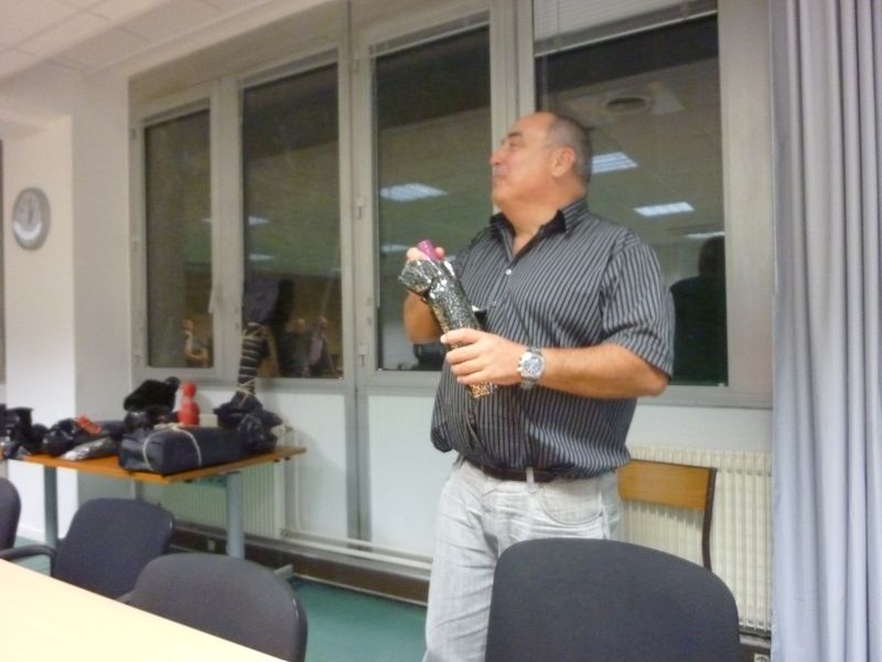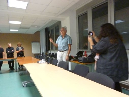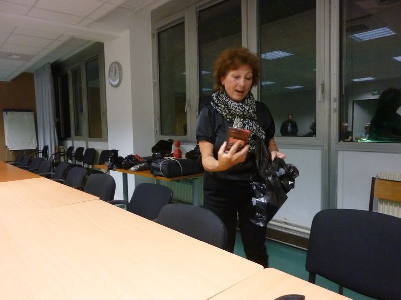 Et voilà, les vacances sont finies et nous nous sommes retrouvés, tous tristes (comme d’habitude !), tellement tristes que nous avions ramené chacun un cadeau noir bien emballé pour que personne ne puisse choisir en fonction de son goût et laisse le plaisir aux autres de savourer ce moment de découverte et de grande solitude que chacun a pu ressentir en ouvrant son paquet. Pour avoir une petite idée de ce que nous avons pu trouver dans ces "cadeaux surprise" il y avait , entre autres, du vin au goût de coca (beurk et bon appétit Eric…), un sac à chaussures (pour Françoise, le pied quoi), une aubergine (elle était pour moi !!!), un parapluie, des bâtons de réglisse (pas mal comme lot tout bien considéré), louche et écumoire (ça c’était pour mon mari !), une montre, du café, du sirop de chocolat noir (ouais ça existe), des chaussettes, un coussin, un moule à gâteau (à toi de jouer Aurore), une lampe frontale, du riz noir, une poêle, une binette, et des radis noirs… BON, je dois vous laisser, j’ai une aubergine à faire cuire…