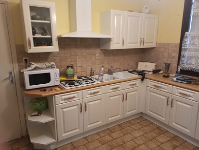 une cuisine, un salon, trois chambres, une salle de bain, jardin clos, une remise dans la cour.