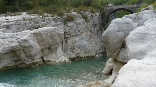 Par des pistes très larges et confortables, nous avons rejoint le pont de la Cerise. Décor naturel au bord de l’eau claire de l’Estéron et non loin de la clue du même nom.