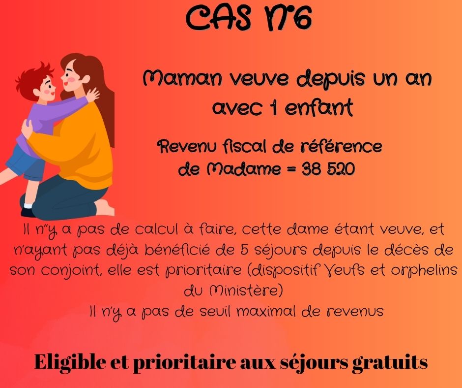 - Parent seul sans enfant à charge, garde uniquement vacances scolaires et week-ends = le parent + ses enfants (et on n’ajoute rien d’autre)