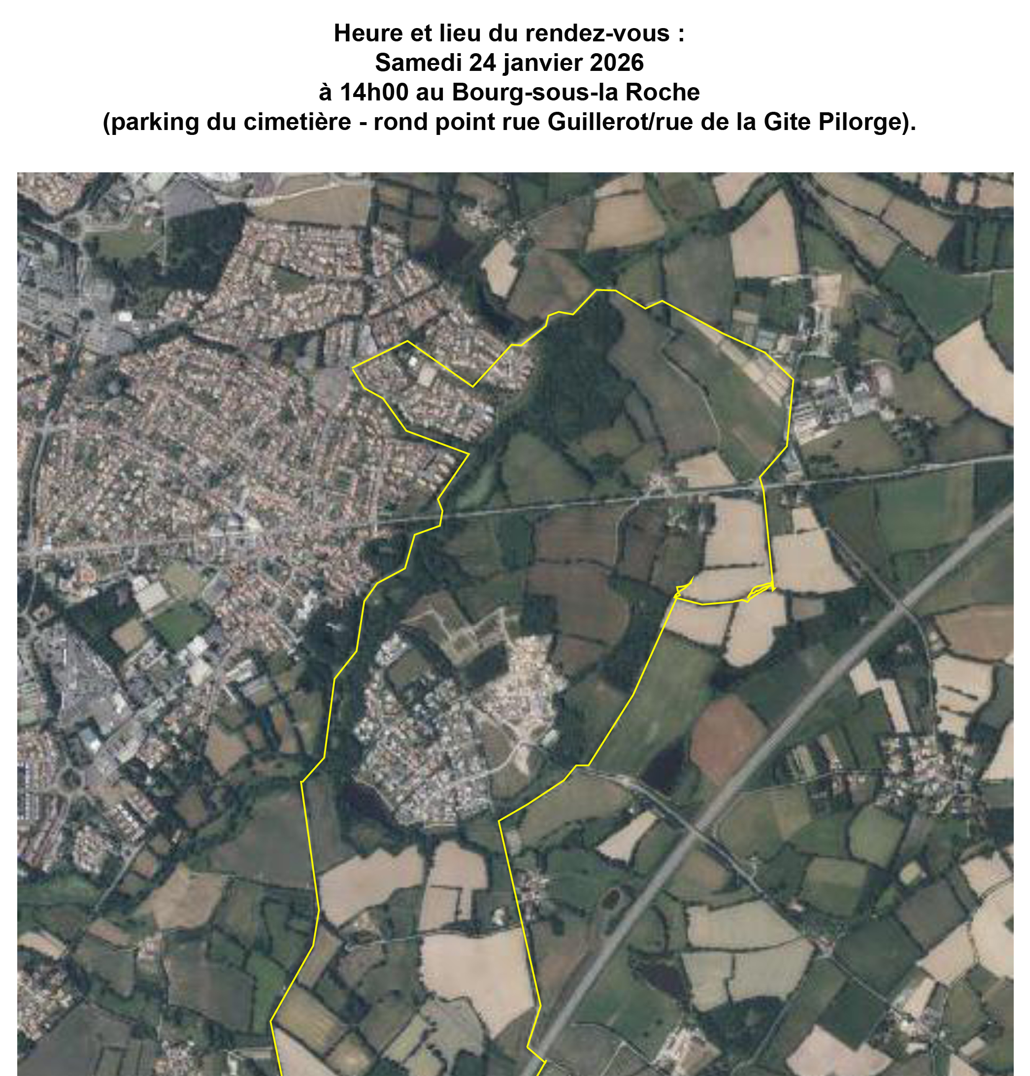 Le rendez-vous est fixé à 14h00 au Bourg Sous La Roche (parking du cimetière - rond point rue Guillerot/rue de la Gite Pilorge).