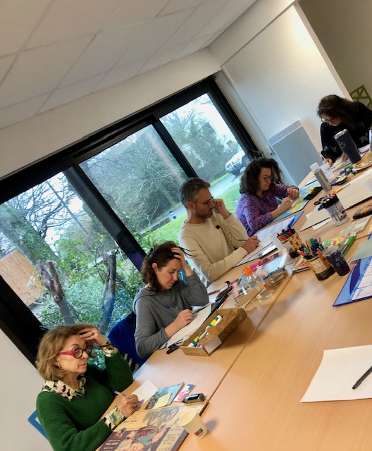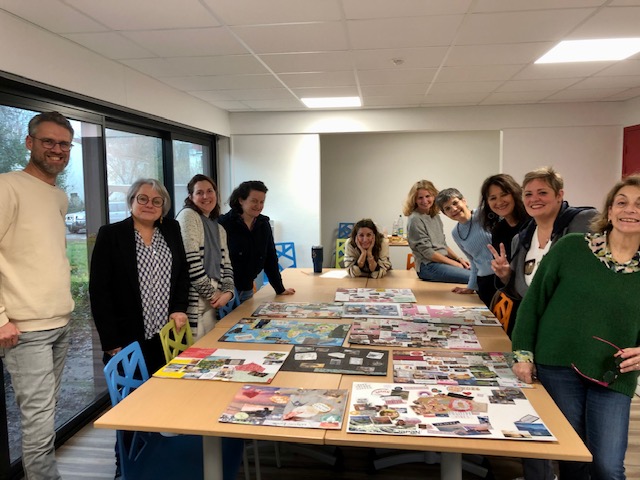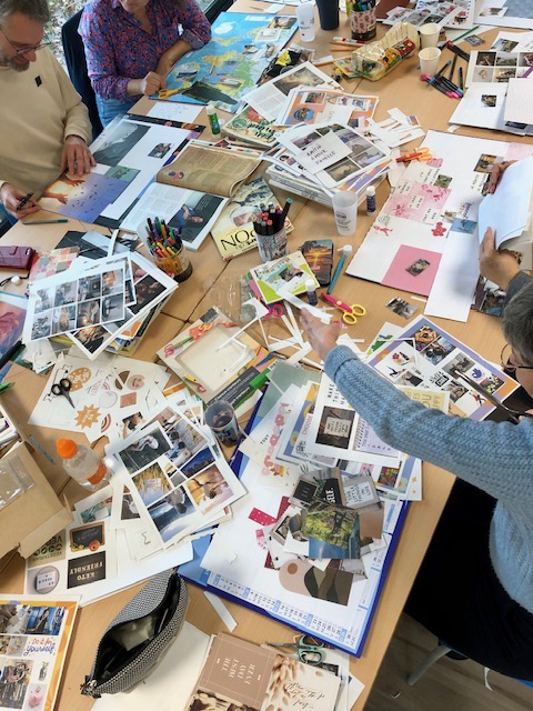 Puis, à travers le matériel fourni, et dans la bonne humeur, chacun a sélectionné les images et les mots les représentant et les a assemblés en les organisant de manière cohérente, inspirante et esthétique.