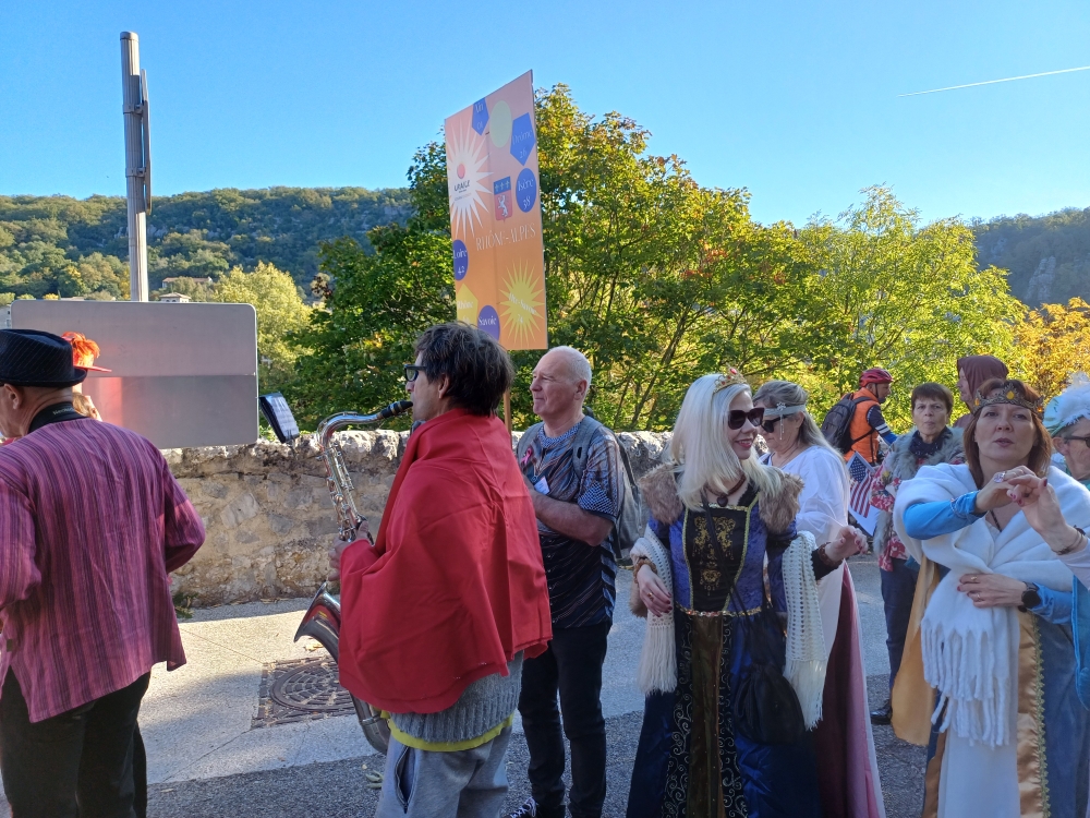 Ce 28ème festival s’est tenu le week-end du 10 et 11 octobre à Vogüe (Ardèche) dans une ambiance conviviale, festive et inspirante. Le thème retenu était le moyen âge : une cavalcade a eu lieu le samedi matin dans les rues de Vogüe, magnifique village ardéchois aux rues pavées sous un soleil éclatant. Les festivaliers avaient revêtu leurs plus beaux costumes, robes et coiffes médiévales.
