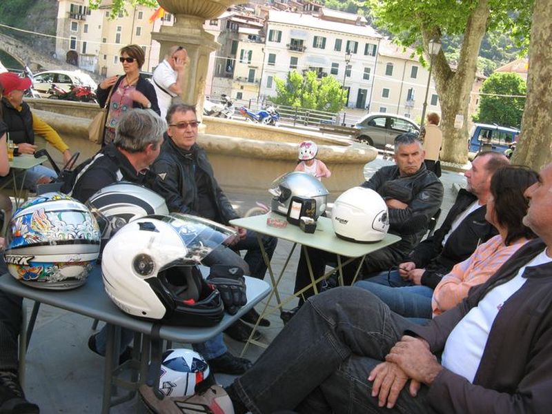 Nous attaquons la descente vers le littoral, en passant par Périnaldo, sentant désormais toute la douceur du climat printanier, pour rejoindre Vallecrosia. Nous regagnons Vintimille et optons pour la voie littorale qui nous offre l’opportunité d’une pause désaltérante sur le front de mer. C’est l’occasion d’évoquer le 9 juin et la prochaine sortie vers les cols alpins qui sont à ce jour encore fermés et bien enneigés.