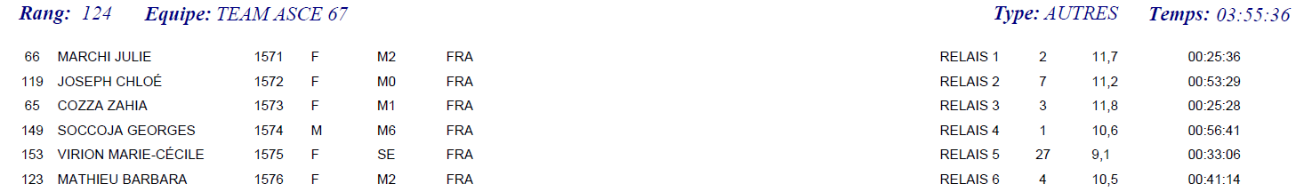 Chacun a donné le meilleur de soi-même pour l’équipe. Qui a dit que la course à pied était un sport individuel ? Merci à tous pour votre participation et félicitations pour vos résultats.