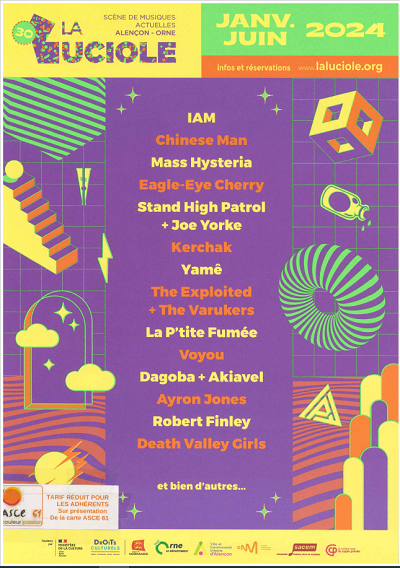 Depuis plusieurs années, l’ASCE61 est partenaire de la Luciole, scène de musiques actuelles d’Alençon. Sur présentation de votre carte d’adhérent ASCE61, profitez des abonnements à tarif réduit et bien d’autres services (location de studio d’enregistrement, accès Espace média…) !