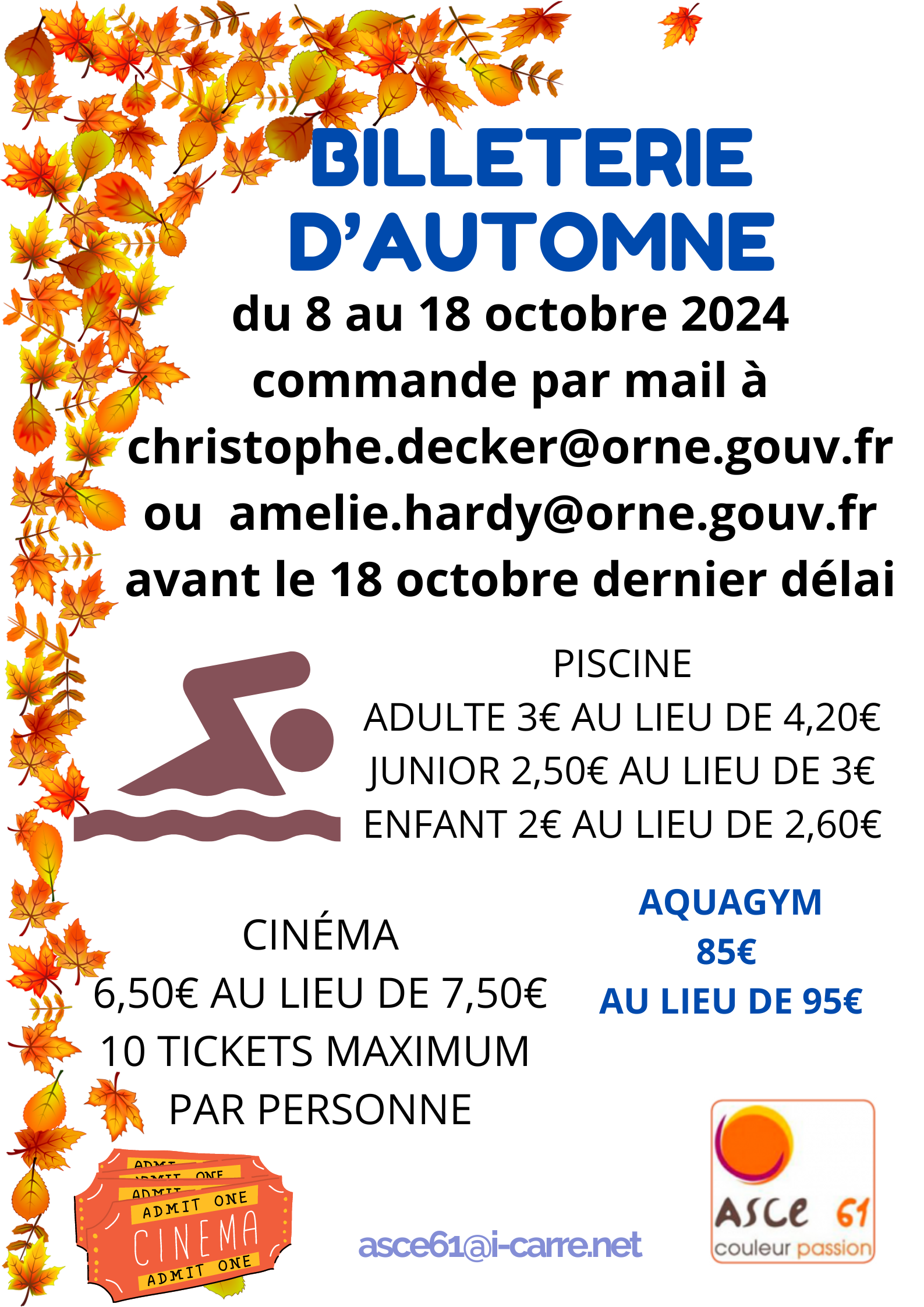 A 10 jours des vacances d’automne, l’ASCE 61 vous propose des tarifs promotionnels sur :