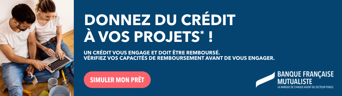 Du 15 septembre au 31 octobre 2025, profitez du Prêt BFM Liberté(1) - Tous Projets : une solution souple et sans justificatif de dépenses demandé, proposée par la Banque Française Mutualiste.