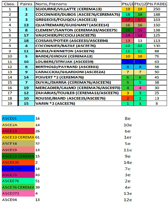 Les asceistes les plus nombreux l’ASCE 76 Cerema, devant l’ASCE 13 Cerema, l’ASCEE 76 organisatrice alignait 9 joueurs !