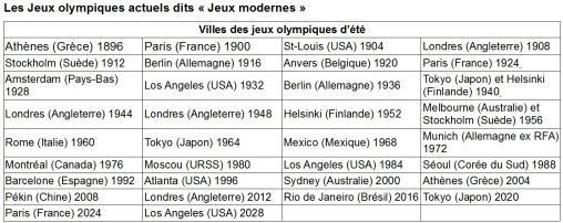 Les Jeux olympiques actuels dits « Jeux modernes »