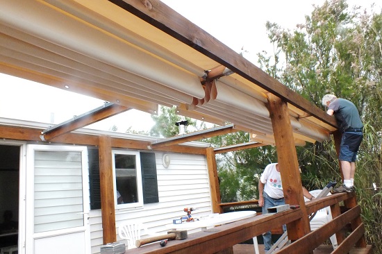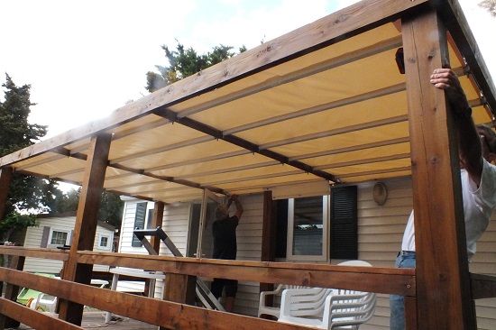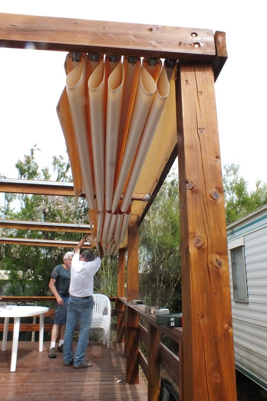 Après le confinement et les restrictions kilométriques « la petite entreprise de l’Ascee 63 » a enfin pu reprendre du service. 5 personnes sont descendues à Leucate à la fin du mois de mai pour terminer la terrasse du Mobil Home qui avait été commencée en 2020.
