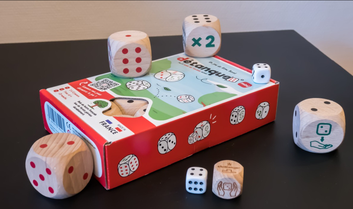 La détanque est un mélange de pétanque et de Uno, à jouer entre ami.es ou en famille, composé d’une pincée de stratégie, un soupçon d’adresse mais surtout beaucoup de rigolade !