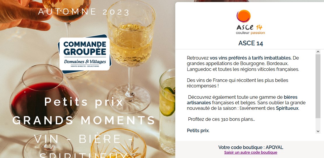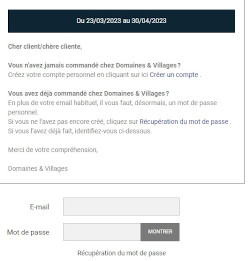 ATTENTION ! les commandes doivent être passées pour le 10 mai dernier délai, directement sur le site de "Domaines et villages".